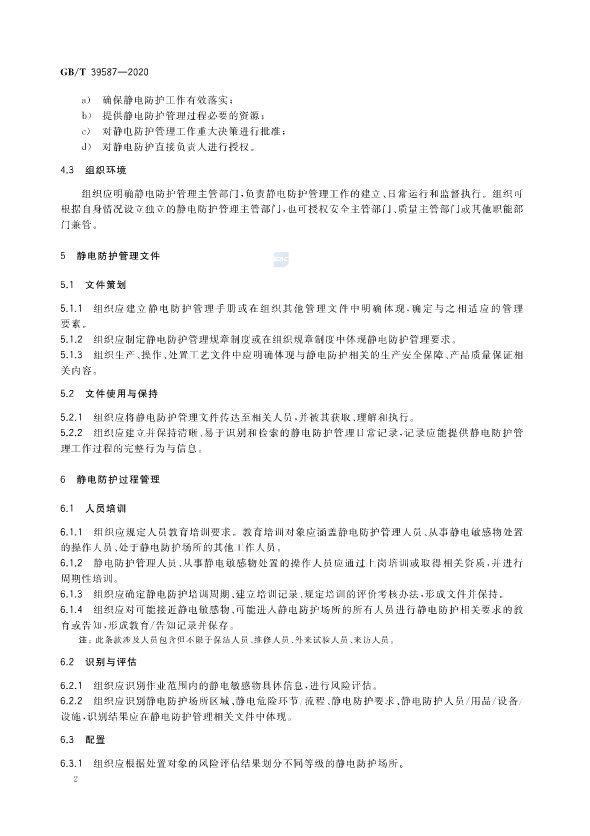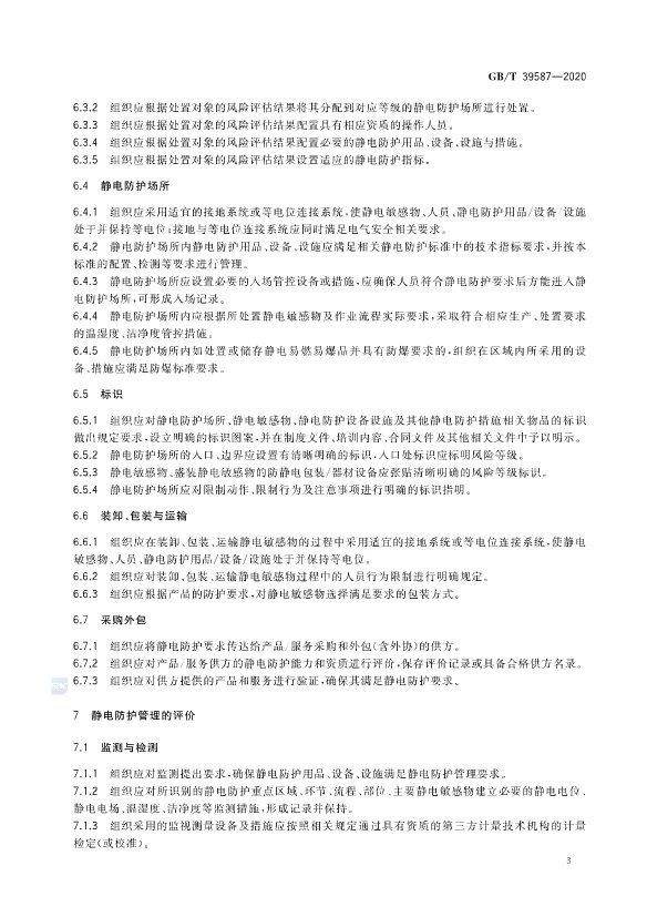 ? ? This standard specifies the requirements for the organization, document, process, evaluation and continuous improvement of electrostatic protection management.